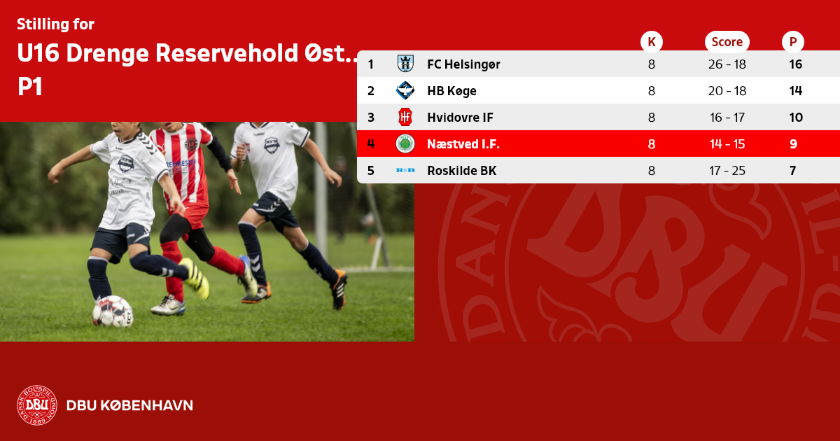 Husk hjemmekampe i weekenderne for hold under DBU København spilles på tiderne kl. 1000 – 1200 – 1400 og 16.00.