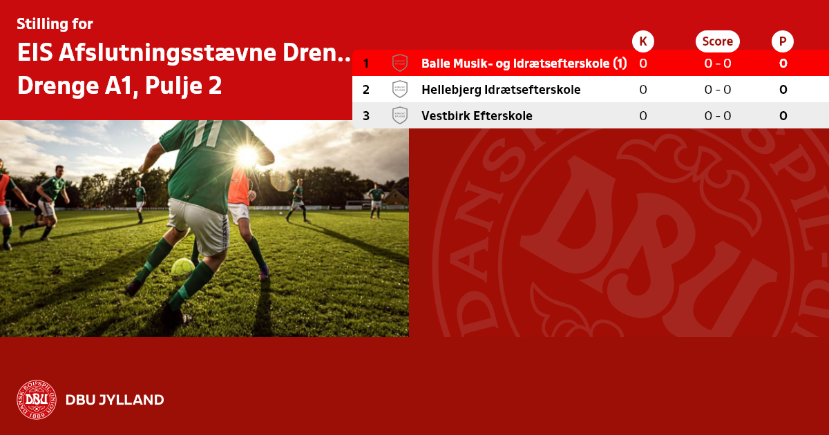 EIS Afslutningsstævne Drenge A - Forår 2026, Drenge A1, Pulje 2