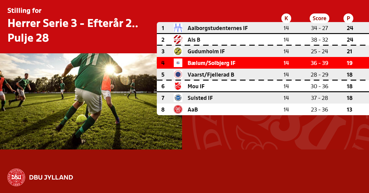 Bedste hold på 7. pladsen undgår direkte nedrykning og skal i play-off: Sulsted IF (pulje 28).