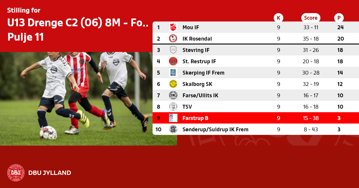 Der skal udfyldes elektronisk holdkort i denne række via DBU's Fodbold APP eller på