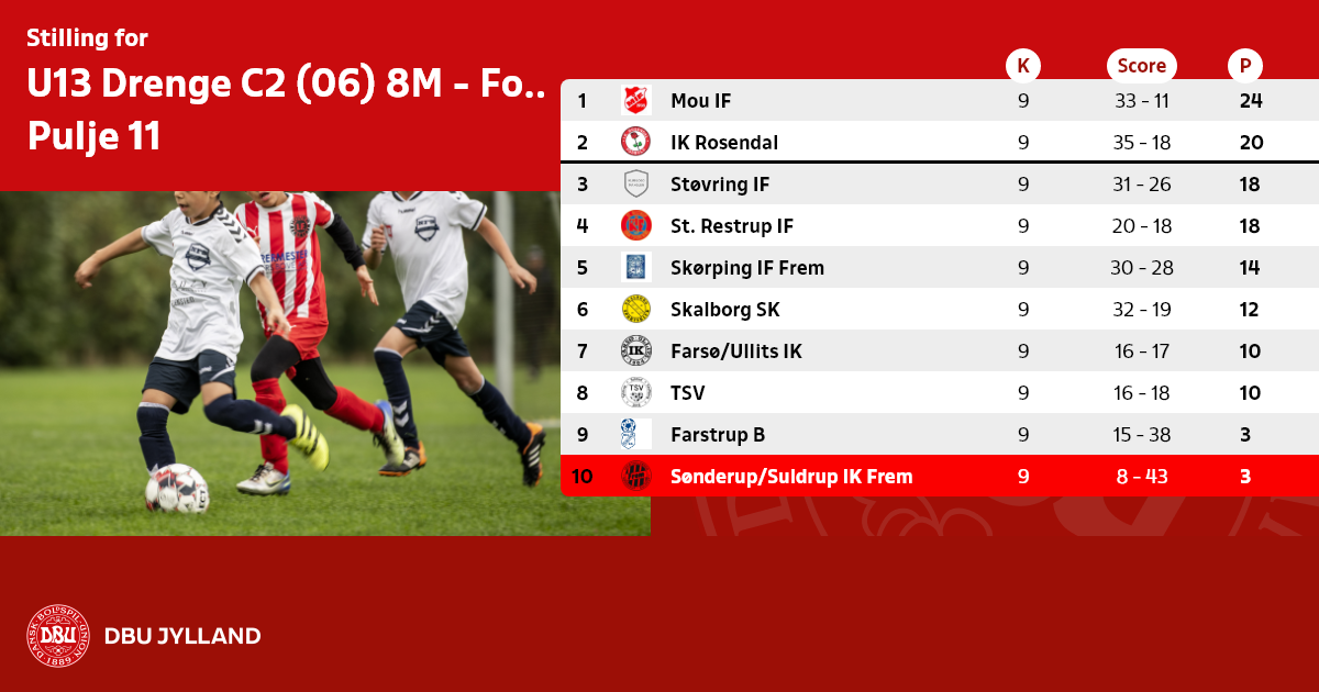 Der skal udfyldes elektronisk holdkort i denne række via DBU's Fodbold APP eller på