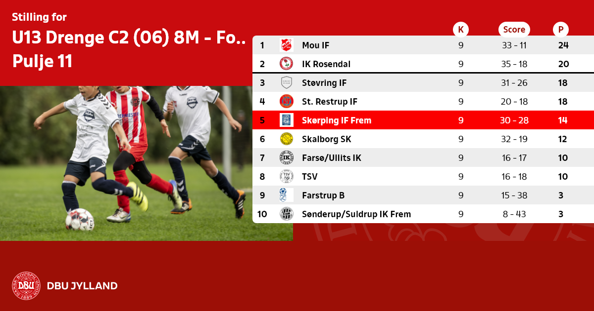 Der skal udfyldes elektronisk holdkort i denne række via DBU's Fodbold APP eller på