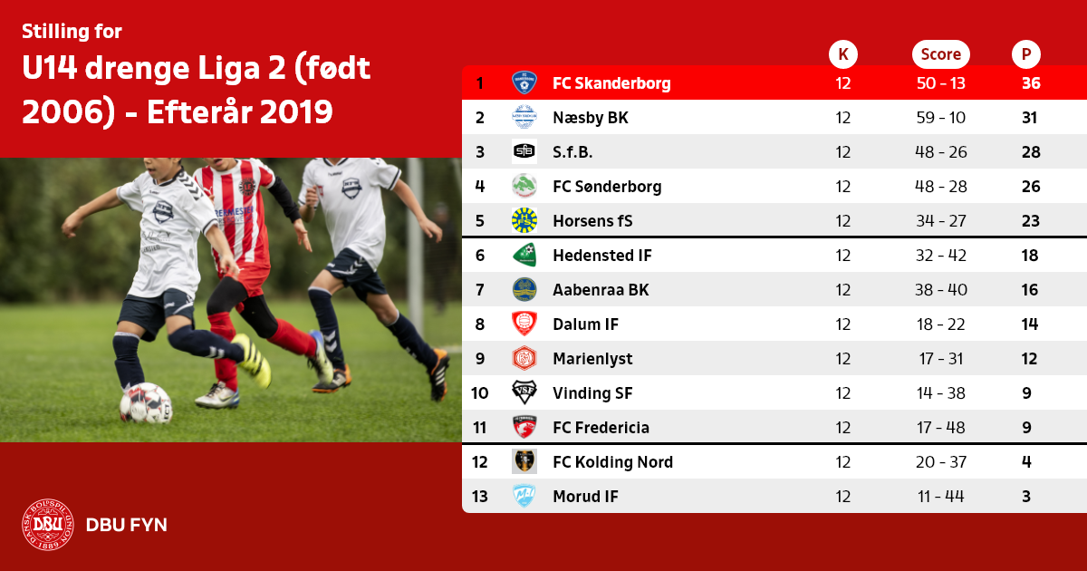 U14 drenge Liga 2 (født 2006) - Efterår 2019
