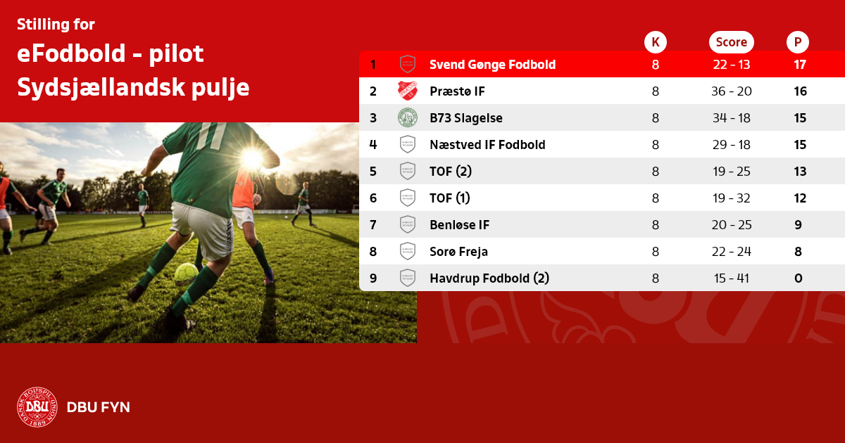 eFodbold - pilot, Sydsjællandsk pulje