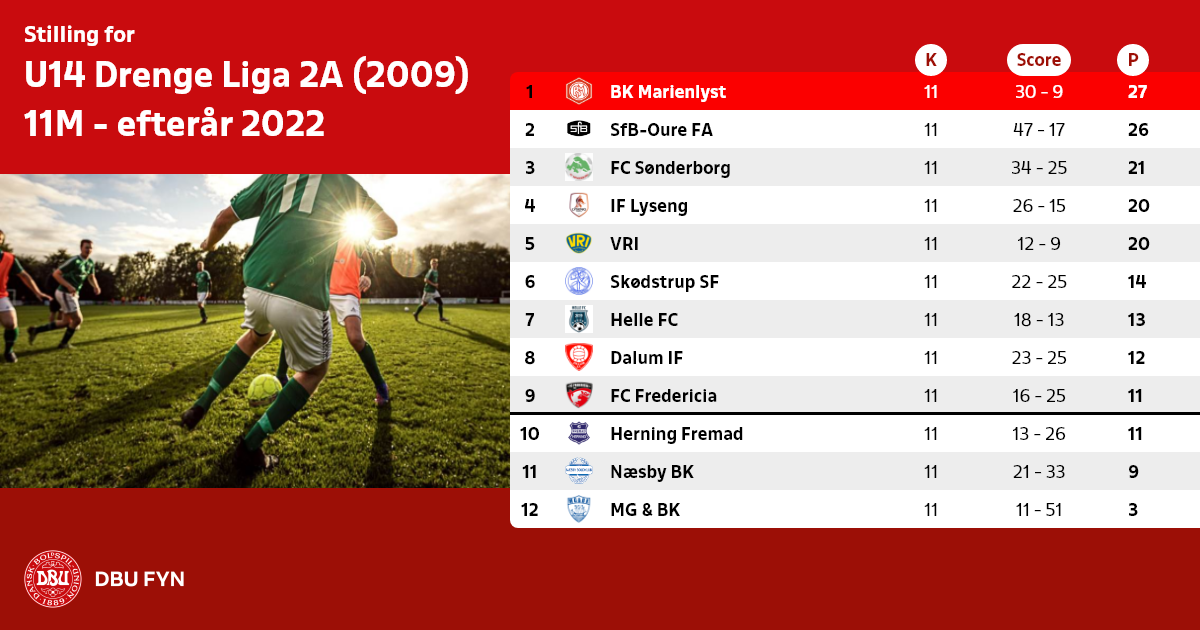 U14 Drenge Liga 2A (2009) 11M - efterår 2022