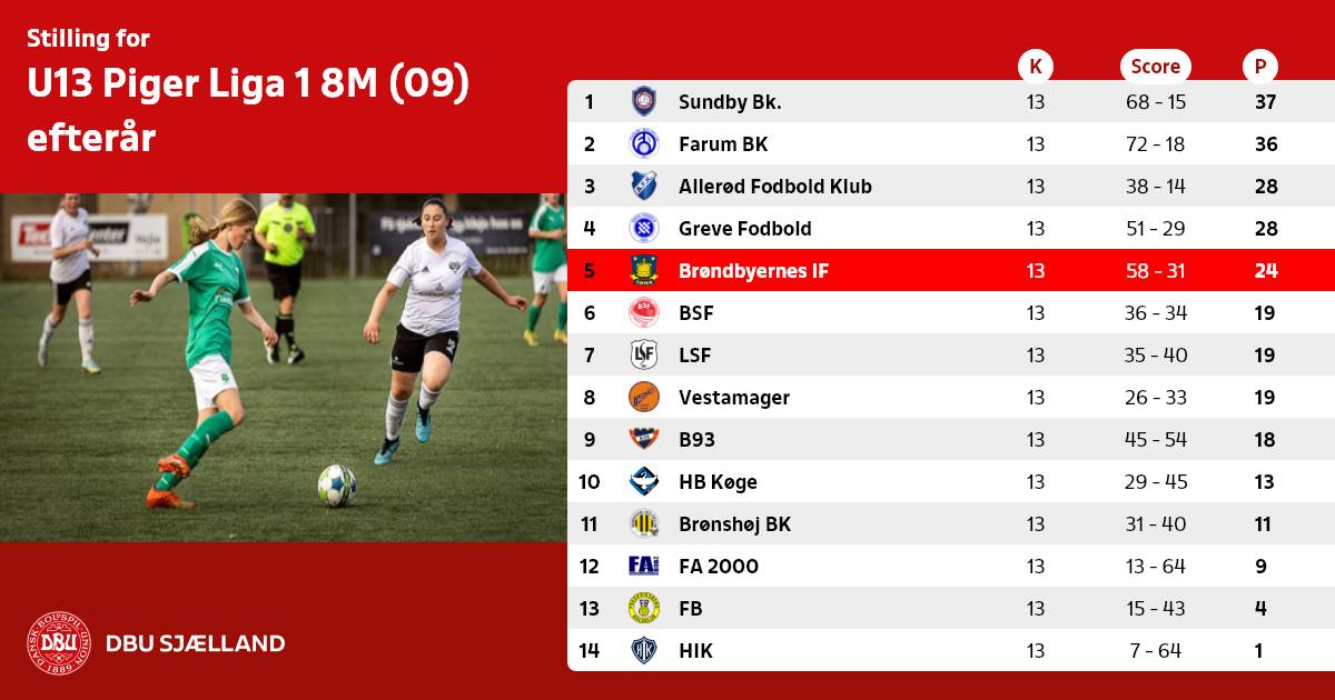 U13 Piger Liga 1 8M (09) efterår