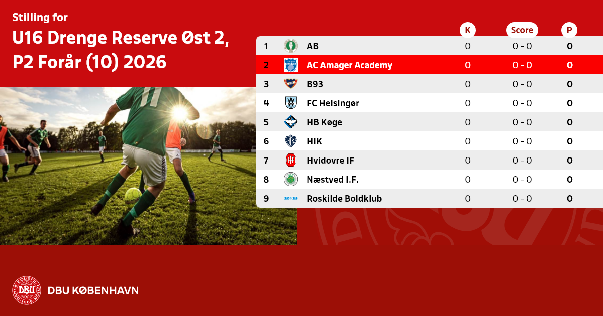 U16 Drenge Reserve Øst 2, P2 Forår (10) 2026