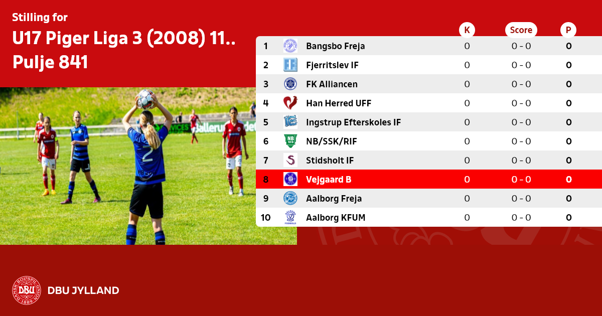 U17 Piger Liga 3 (2008) 11:11/9:9 - forår 2025, Pulje 841