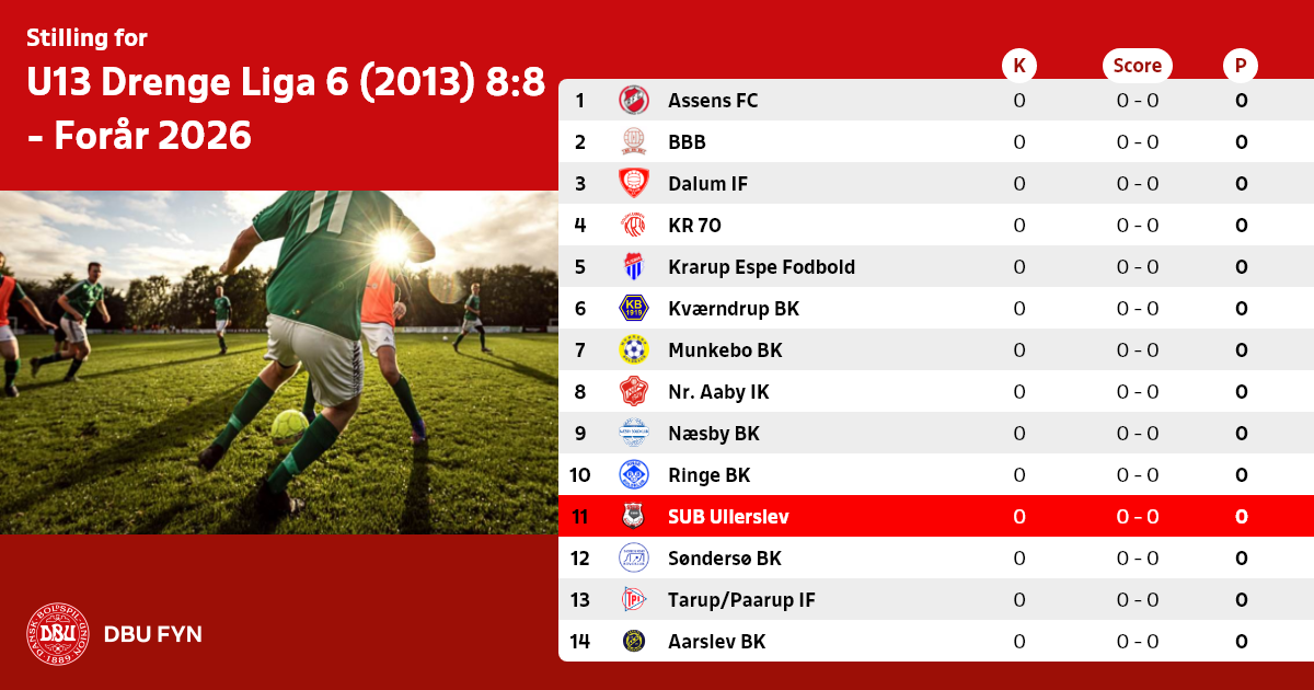 U13 Drenge Liga 6 (2013) 8:8 - Forår 2026