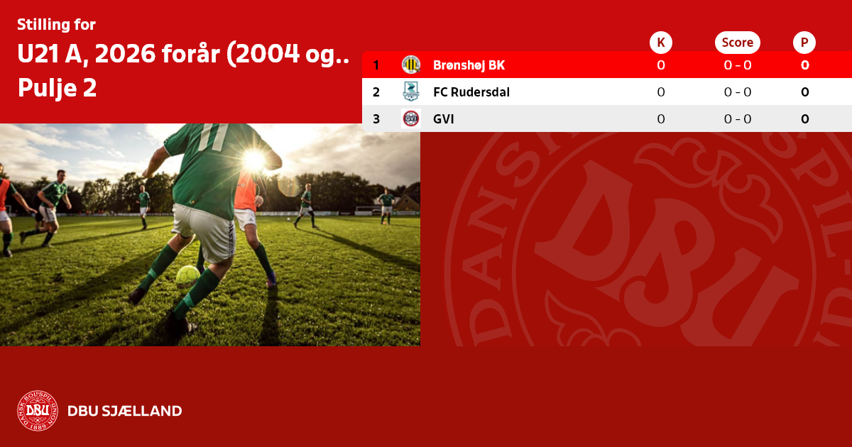 U21 A, 2026 forår (2004 og yngre), Pulje 2