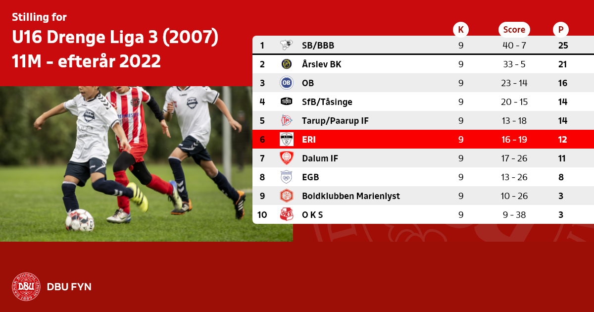 U16 Drenge Liga 3 (2007) 11M - efterår 2022
