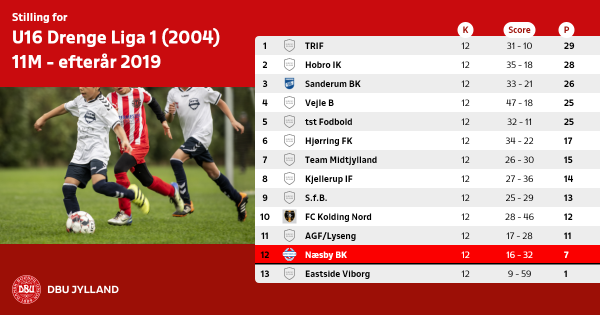 U16 Drenge Liga 1 (2004) 11M - efterår 2019